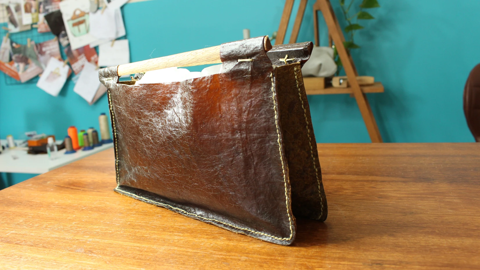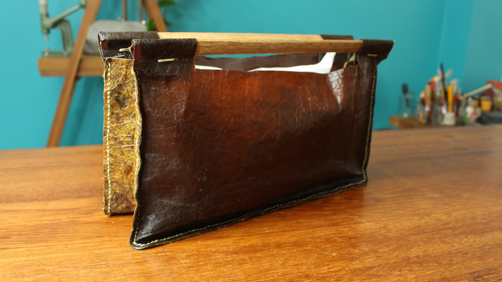 Curiosas com o resultado, também nos aventuramos aqui na Mastri a testar o material e montar algumas bolsas. É um material maleável, fácil de cortar e resistente ao fogo. Pode ser costurado tanto na máquina de costura quanto manualmente. Agora precisamos testar a durabilidade, se irão suportar peso e se as costuras não irão abrir…
